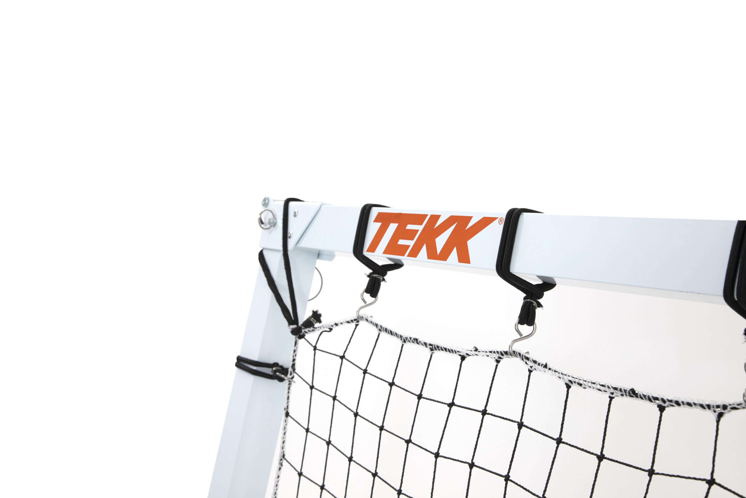 The Tekk Trainer is used by MLS soccer teams and the leading basketball programs in the country for daily training. With its one-piece design the Tekk Trainer is the strongest and largest portable trainer on the market that angles with 40 square-feet of surface area. With a powder-coated frame made of aircraft-grade aluminum and 3mm-thick steel brackets, it has the strongest rebound of anything available.